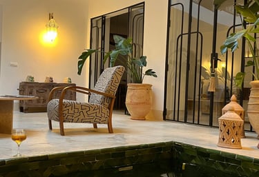 Découvrez nos espaces de détente, soigneusement conçus pour marier l’essence de l’accueil marocain et la beauté intemporelle de l’architecture traditionnelle. Ici, chaque détail a été pensé pour vous offrir bien plus qu’un simple lieu de repos : un véritable cocon de sérénité, où se mêlent confort, authenticité et raffinement.